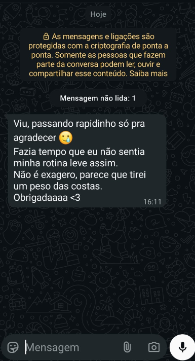 Rotina leve: nada de planner de monge ou rotina 5h da manhã. Você monta hábitos que cabem na sua vida real, sem pirar e sem pressão.