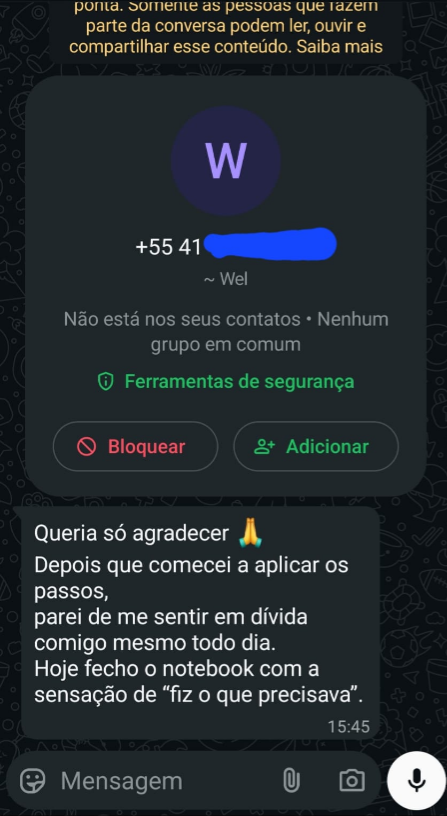 Aí que tá: se você não tem tempo, é exatamente por isso que precisa aplicar. O método existe pra você recuperar horas que hoje estão sumindo sem você perceber.